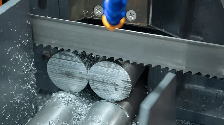 Feito por serra, usado para cortes retos em tarugos, tubos e perfis.
